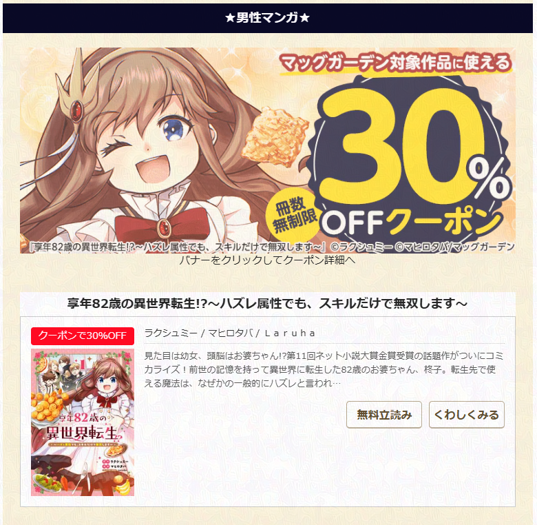 「享年82歳の異世界転生!?」も対象作品となっている模様…